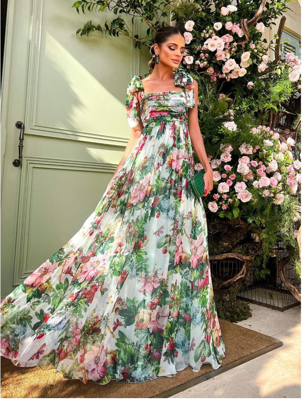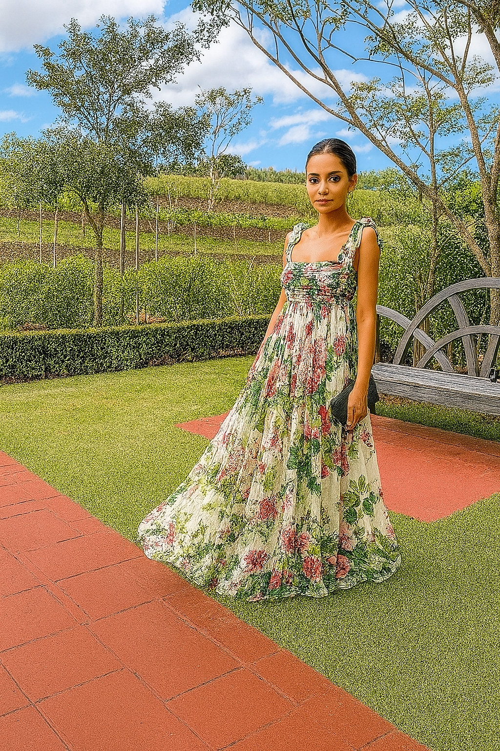 Élégante, fraîche et poétique — la robe Bohème Botanique est une ode à la nature et à la féminité. Son tissu fluide orné d’un motif floral délicat capture l’essence même de l’été et l’âme du style bohème chic.